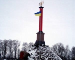 У памятника два бигборды с надписью "Одна Украина - одна история. Почтим день памяти героев Крут!"
