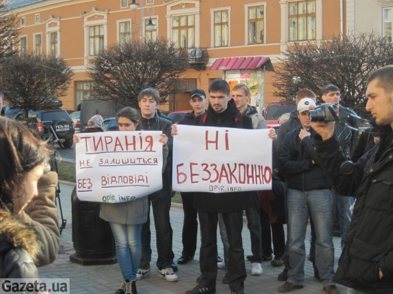 Активисты "Автономного сопротивления" заранее анонсировали в соцсетях акцию. К областной прокуратуре Львовской области пришло несколько десятков молодежи, преимущественно мальчики.