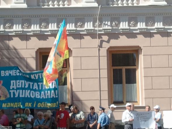 Избиратели "тушки" Вячеслава Кутового под Верховной Радой требуют от него сдать мандат.