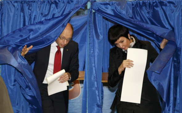 Один из лидеров оппозиции Арсений Яценюк проголосовал утром 28 октября, сообщает "Украинская правда". Политик голосовал вместе со своей женой.