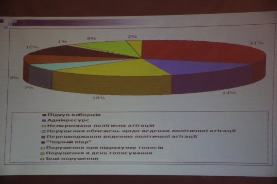 "На третьем месте - админресурс, нарушения совершенные органами государственной власти и местного самоуправления и их должностными лицами. Мы ожидали более серьезных его проявлений, его было меньше чем на выборах в 2010 году, чем в 2004. Но это не смогло существенно повлиять на результат волеизъявления граждан. Мы вернулись в ту волну, когда черный пиар был одним из основных технологий дискредитации оппонентов - много случаев в 199-м округе, 200-м, 198-й округ стал столицей черного пиара, где компромат доходил до абсурда".