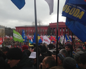 "Если подпись президента будет поставлен под этими законами он станет не только участником преступления, а его организатором. Вы чувствуете, что они уже сыпятся, но нам нужно их подтолкнуть. После митинга вы пойти домой, на работу или в университет и призывать людей выходить против этой власти ", - сказал Олег Тягнибок