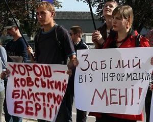 Центр исследований освободительного движения из Львова и Киевская организация общественного движения "Отпор" устроили под стенами Центрального офиса СБУ акцию "Приходи не сдавайся".