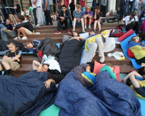 "И днюю, и ночую. На время дождя, если успеваю, то накрываюсь тентом. Здоровье уже подорвано, - рассказала активистка. - Спим на ковриках и раскладушках под открытым небом. Но мы все стерпим - украинский народ терпелив. Планирую здесь стоять до конца".