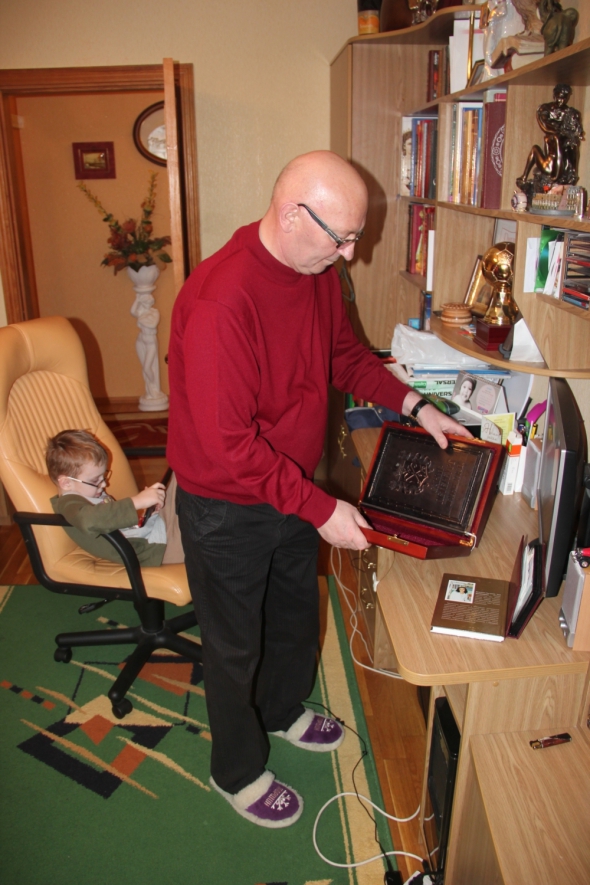 " Храню часы от президента Кучмы. Их никому не показываю. Лежат в сейфе . Я две вещи не показываю : эти часы и книгу Лутака с подписью "Спеши делать добро людям".