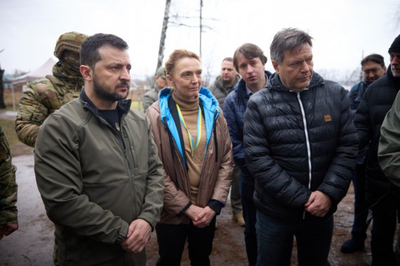Вместе с Зеленским школу посетили вице-канцлер Германии Роберт Хабек и посол ФРГ в Украине Анка Фельдгузен.