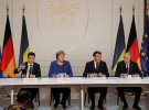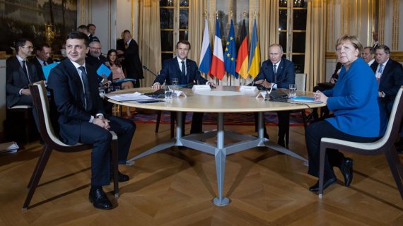 Перед этим состоялся диалог между лидерами "нормандской четверки", которую прервали ради переговоров глав двух стран тет-а-тет. Они проходили в Елисейском дворце больше часа.