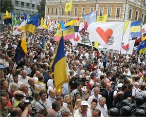 На митинг пришли более 10 тысяч человек. Начал его один из лидеров Объединенной оппозиции Александр Турчинов, который акапельно запел гимн Украины. Вскоре уже включили музыку и люди также спели Гимн, положа руку на сердце.