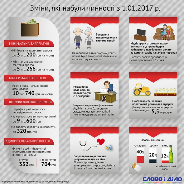 С 1 января 2017 года стал действительным ряд нововведений в социальной и экономической политике страны.