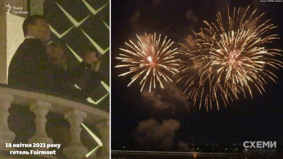 "В 22:00 напротив отеля с Труханова острова начал раздаваться праздничный салют, созерцать который гости отправились на террасу отеля. С конца 2019 года Киевсовет запретил использование пиротехники и салютов "на период сдерживания вооруженной агрессии на востоке", - говорится в сюжете.