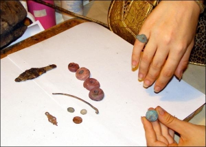 — В этот раз нашли остатки посада площадью 200 квадратных метров возле городища Лтава, — объясняет Супруненко. — За остатками печи в пострадавшем от монголов жилище обнаружили часть шейной гривни (украшение на шею. — " ГПУ"), браслет из желтого стекла и бронзовый перстень. По-видимому, полтавка спрятала их за печь от врагов.