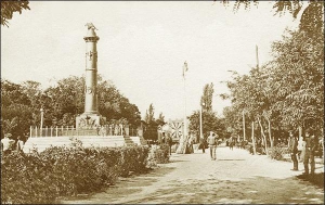 В 1954-ом к 300-летиювоссоединению Украины с Россией на ее месте построили похожую по форме Ротонду дружбы народов. На фронтоне были слова: "Слава Союзу Радянському, слава, Слава Вітчизні народів-братів". К 1100-летию Полтаву надпись заменили словами писателя Ивана Котляревского: "Де згода в сімействі, де мир і тишина, щасливі там люди, блаженна сторона".