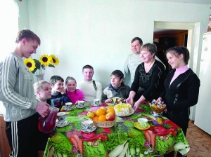 - Другие мамы жалуются, из кухни не выходят. То не умеют организовать работу, - машет рукой Ольга Михайловна. - Как тушу картошку, надо почистить два ведра. Если бы сама, просидела бы полдня. А детвора за полчаса справляется. Лук и морковь на зажарку готовлю заранее - нарезаю и замораживаю. Закруток каждое лето делаю по 600 трехлитровых банок. В еде дети непереборчивые. Больше всего любят постный борщ и капустняк. Держим шестеро свиней и кролей. Раньше брали по 12 буханок. Дети не могли накушаться хлеба. Теперь семи хватает. Вкусненькое любят - покупаем по паре ящиков печенья.
