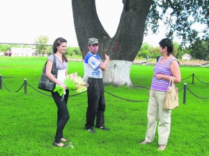 - Это дерево - наш местный талисман, - говорит 47-летний Виктор Писаренко (на фото). С женой Оксаной и дочерью Ириной фотографируется около дуба. - Я до 35 лет играл в футбол в команде "Старт". Когда ворота команды были около дуба, за все годы ни разу не проигрывали.