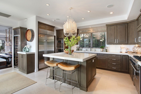 - Кухня с островом: лучший выбор для большой комнаты. Функциональный остров поможет в приготовлении пищи, заменит обеденный стол и станет местом для хранения посуды.