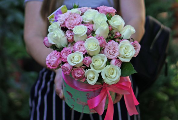 2. Классной руководительнице и первой учительнице можно преподнести корзины или шляпные коробки с шикарными розами, кокетливыми герберами, игривыми альстромериями, королевскими орхидеями.