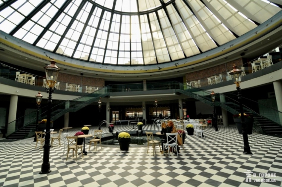 Домики здесь двухэтажные, перемещаться к бутикам на вторых этажах можно с помощью эскалаторов и лестниц. Также во время покупок шопперы смогут приобщиться к искусству. На втором этаже расположилось арт-галлерея "Мануфактура", в которой до 24 ноября можно оценить работы американского художника, украинца по происхождению - Олега Радвана.