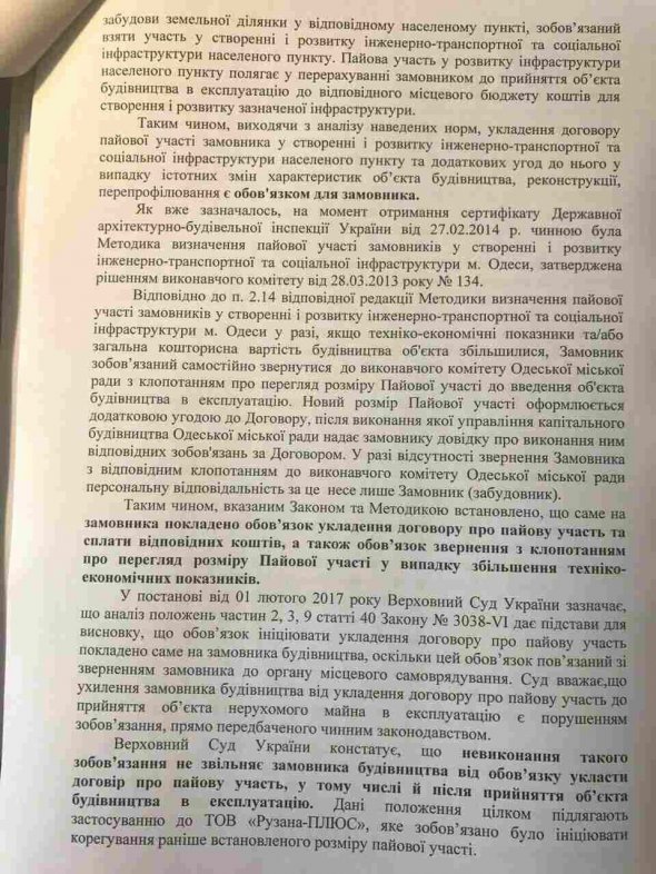 Исходя из вышесказанного, одесский муниципалитет решил самостоятельно пересчитать сумму паевого участия ООО "Рузана-Плюс". Еще в 2016 году было принято решение исполкома об утверждении дополнительного размера паевого участия ООО "Рузана-Плюс" в размере 3 млн 430 тыс 636 грн. Однако по истечению почти года фирма, за которой строит известный строительный махинатор АднанКиван так и не перечислила данную сумму в бюджет Одессы.