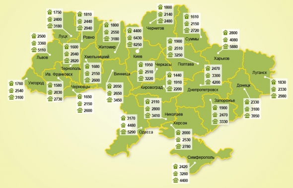 Традиционно самые высокие цены в столице. Так, по цене месячной аренды однокомнатной квартиры в Киеве можно три месяца снимать аналогичное жилье в Кировограде. Также дорогая аренда в Одессе и Харькове. А самые низкие цены в Кировградской, Ивано-Франковской и Тернопольской областях.