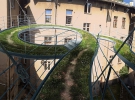 Концепт представляет собой узкий извилистый переход между корпусами офиса, которым напоминает тропу обросшую травой.