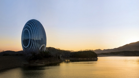 В пригороде Пекина построен необычный отель в форме восходящего солнца, архитектура которого для китайцев символизирует удачу, процветание и бесконечность.