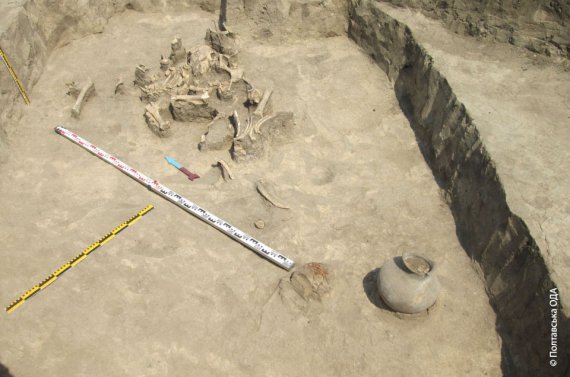В том же году на раскопках в урочище Царская Могила, что на Котелевщине, археологи нашли уникальный целый глиняный сосуд, бронзовые украшения и наконечники стрел.