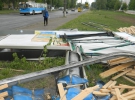 "Водитель вез в Винницу деревянные доски из Ровенской области. При падении грузовика доски высыпались из кузова. Уже сегодня машину перевернули десять спасателей" - добавляет пресс-секретарь.