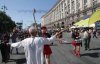 150 митингующих прошли маршем от площади Конституции к скверу возле Благовещенской церкви. Участники скандировали: "Бандера мерзавец", "Власть убивает людей" и другие лозунги.