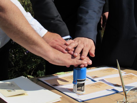 После спецпогашения марки и. о. мэра города Александр Шамота вручил сотрудникам музея-усадьбы грамоты за помощь в организации мероприятия и за плодотворную работу "на благо усадьбы".