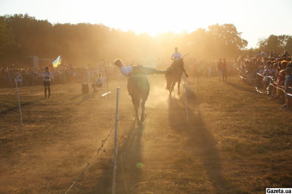 Но не главными действующими лицами Гелон-феста люди в странном, на взгляд многих посетителей, одежде. Это члены запорожского историко-патриотического общества "Великая степь", которые реконструируют традиции и привычки древних скифов.