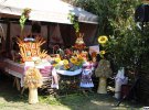 Рядом - городок, где представлены достижения хозяйств Котелевской общины. Здесь угощают караваем, пирожными, колбасами, наливками и другими вкусностями, которые производят в многочисленных фермерских хозяйствах общины.