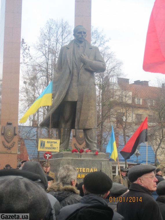 После ночного празднования Нового года львовяне сошлись к памятнику Степану Бандере на торжественное вече. Проводник ОУН родился 1 января.