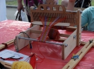 Красно-черные и желто-синие браслеты плели дети на занятии Марички Дендеберы. Она провела мастер-класс по ткачеству и плетению. На станке показывала, как изготовить украинский пояс - крайку.