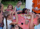"Дети плели браслеты из четырех нитей. Самые популярные цвета - синий с желтым. Сегодня изготовили 40 штук. Кривой Рог - восьмой город, где я побывала с мастер-классом. Запомнилась девочка, которую родители из Донецка перевезли в Россию, а на лето отпустили к бабушке в Лисичанск. Она сплела себе четыре браслета – так ей все это понравилось", - говорит Маричка Дендебера.