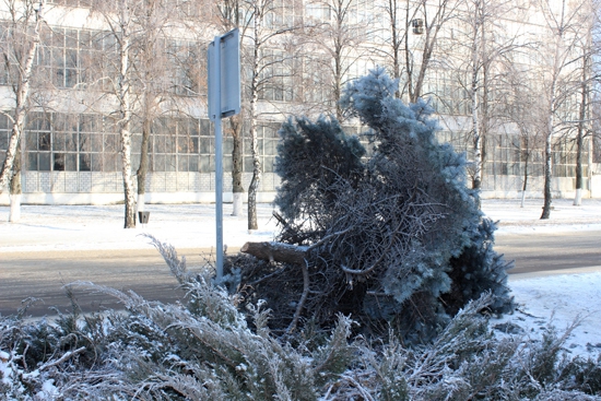 В городе Лубны на Полтавщине неизвестные срубили и сожгли пять больших елок, растущих в городских парках. 35-летние растения считались визитной карточкой города.