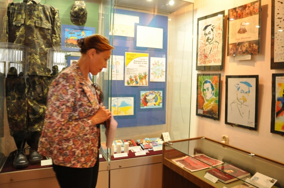 Более 200 экспонатов из США, Австрии, Англии, Польши, Италии, Португалии, Греции и других стран передали из-за рубежа. Выставка разделена на три комплекса - поддержка евромайдана, волонтерское движение, культура и просвещение.