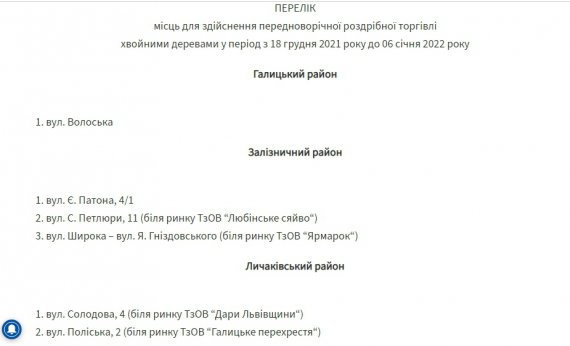 Традиционной продажи новогодних деревьев не будет только у железнодорожного вокзала, сообщила пресс-служба Львовского городского совета.