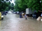Из-за образовавшихся огромных луж затруднено движение транспорта, пешеходы, которые были застигнуты непогодой врасплох не могут добраться домой и вынуждены искать укрытие в магазинах, офисах и прочих помещениях.