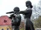"Многие спекулирует на теме участия во Второй Мировой войне визуализированных в этом монументе человек. Можно было бы присмотреться внимательнее и на одном из барельефов увидеть воспроизведения убийства красноармейцем украинского бойца УНР", - добавляет Шолтис.