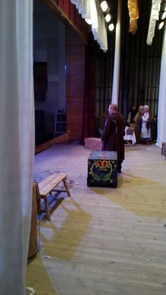 "На фото уже разбиты от падения куски. Пыль перекрыла актеров от зрителя на несколько минут. Но мы допели. Впоследствии нам стресс компенсировали караваем и бурными аплодисментами", – написал Павел Гончаров.