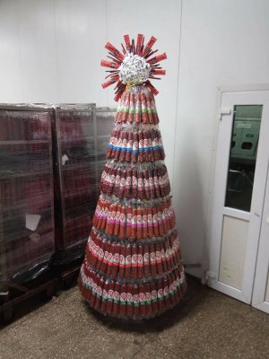 Елку сделала технолог предприятия Анастасия Константинова. На работу потратила 2 часа. Инсталляции дали название "Бесконечная новогодняя радость".
