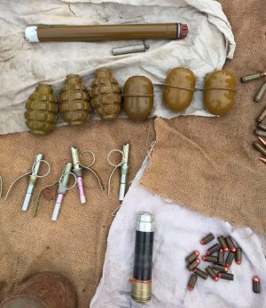 "Правоохранители проявили во кирпичом развалившейся здания черный полиэтиленовый пакет. В нем было 55 патронов различного калибра, 3 гранаты Ф-1, 3 гранаты РГД-5, 5 запалов к гранатам, 5 противотанковых гранат, 1 сигнальная мина и 1 граната ВОГ-17 к станковой гранатомета АГС-17", - говорится в сообщении.