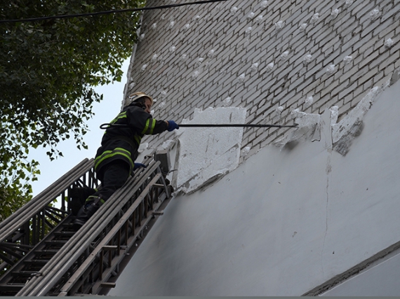 Вчера жители улицы Потемкинская в Центральном районе Николаева сообщили спасателям об угрозе обрушения. На стене девятиэтажного жилого дома начало осыпаться утепления. Строительная фирма проигнорировала просьбу решить проблему. Тогда бойцы службы спасения демонтировали утепления, сообщает ГУ ДСЧС Украины в Николаевской области.