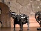 В одной маленькой скульптуре может соединиться очень много разного металлолома. Модель слона сделана из частей ложек, вилок, печатной машинки, головок от болтов и железных кроватей. Мастер сначала изучает анатомию животного. Затем создает каркас и постепенно приваривает необходимые части. Пятикилограммовая модель слона была изготовлена в течение одного дня.