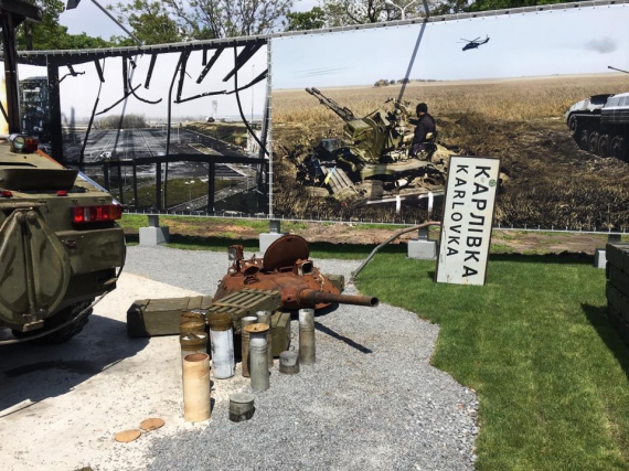 Вскоре здесь также покажут блокпост украинской армии. Выставку дополнят артефакты, привезенные из зоны АТО - гильзы, осколки, простреленные дорожные знаки из Донбасса.