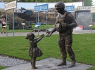 "В экспозиции будет скульптура - маленькая девочка дает яблоко бойцу. На ее создание нас вдохновила реальная история. Военный спас 5-летнего ребенка, родители которого погибли под обстрелом. Парень был ранен, ему пришлось сдаться в плен, однако жизнь девочке он сохранил "- рассказывает Наталья Шулика, координатор Центра помощи участникам АТО.
