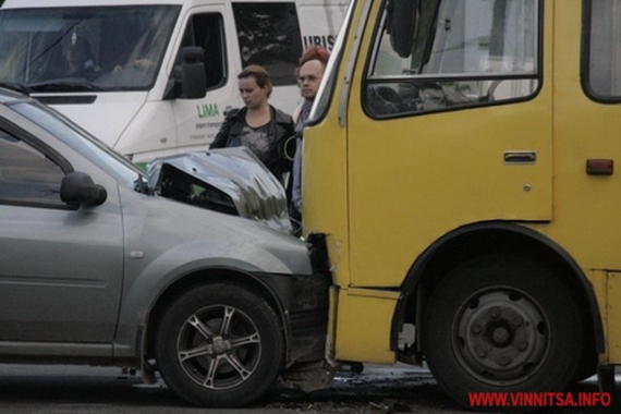 "На остановке "Студенческая", что находится на улице Хмельницкое шоссе, автомобиль "Renault" влетел в маршрутку 17-А. За рулем легковушки была женщина. По ее словам, ехала в сторону центра города, а со стороны ее авто прижал белый микроавтобус. Опомнилась, когда уже въехал в "Богдан", который стоял на остановке. В "Renault" полностью разбит передок автомобиля. Водители и пассажиры маршрутки не получили повреждений", - сообщает издание.