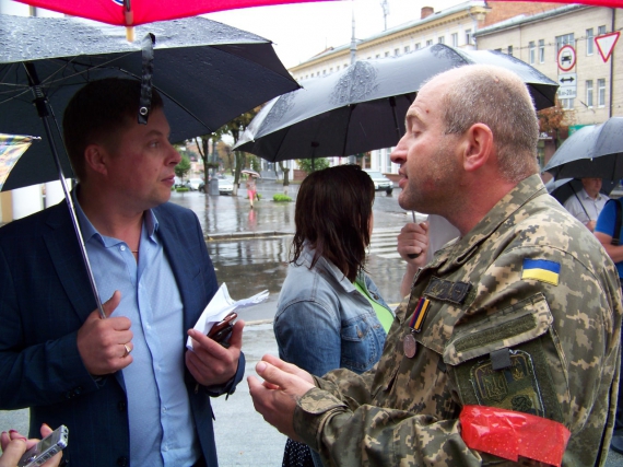 "Инициаторами митинга были участники АТО с Хмельницкого района. Поддерживают Казатин, Калиновка, Ильинцы, Липовец. У всех есть вопросы по выдаче земель военным. Лично я здесь потому, что в Хмельнике участникам АТО показали, где выделят нам 100 гектаров земли. Предложили собрать документы чтобы все не ехали на "прозорые" офисы. Мы сформировали список из 46 человек. Когда все подготовили, нам дали заднюю. Поэтому добиваемся чтобы сдержали слово. Если там действительно есть препятствия - выйдите и объясните по какой причине не можете выполнить обещание ", - рассказал корреспонденту Gazeta.ua Александр Антонюк из Хмельника.