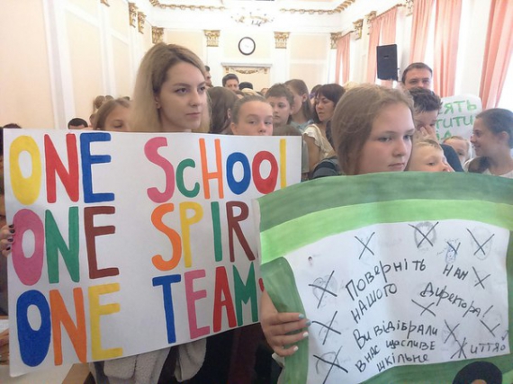 "Этот человек сделал очень много для наших детей и учебного заведения. Он - реформатор. В школе работает радио, в этом году построили футбольную площадку. В целом за год родители вложили около миллиона гривен на ремонт и обновление материальной базы школы. Директор - честный человек. И бывает не согласен с позицией управления образования. Им не нравится работа прогрессивными методиками, поэтому решили поставить "своего". Хотя за 2015 год Евгений Романов не получал ни выговоров, ни взысканий. 54 учителя подписали заявление на его поддержку. Каждый учебный день начинается с гимна Украины, который ученики поют. Это очень проукраинская школа и родителям нравится такой стиль воспитания", - пояснила Светлана Говорова, председатель родительского комитета.