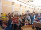 На сессии Полтавского горсовета ученики ООШ №3 и их родители пришли с плакатами. Требовали вернуть директора школы Евгения Романова. По словам митингующих, директора попросили уйти, потому что имеет слишком проукраинскую позицию.